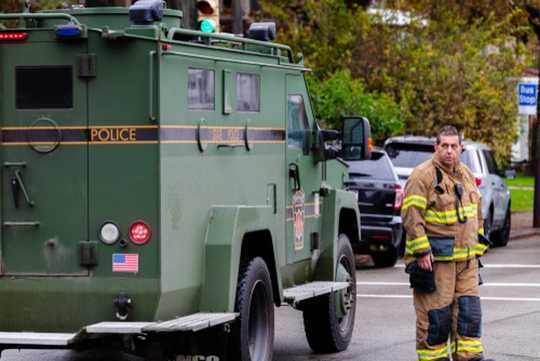 A first responder after the shooting at Tree of Life synagogue in Pittsburgh, Pennsylvania, Oct. 27, 2018. B Peterson