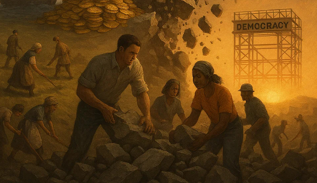 For a time, the trauma forced a reckoning. After the war, governments stepped in. They regulated markets, built safety nets, and taxed the rich. And yes, for a brief moment in history, the system tried to serve people, not just profits. It wasn’t perfect, but it was a pause in the machine—a rare window when we tried to make capitalism serve democracy rather than the other way around.